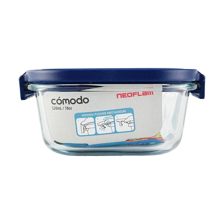 Square Glass Lunch Box Heat Resistant Airtight Leakproof Fresh Box 520ml
