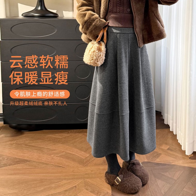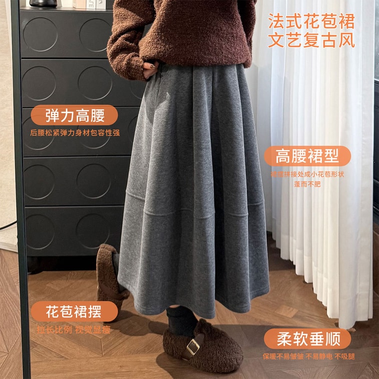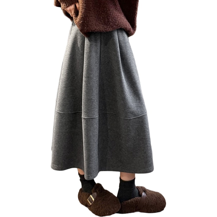 New Acetate Wool Petal Midi Skirt for Petite Figures, Grey Loose Fit Flattering Silhouette Grey, L
