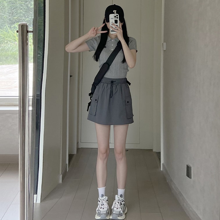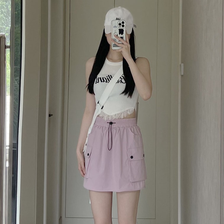 New American High Waisted A-line Slimming Drawstring Workwear Shorts Pink S