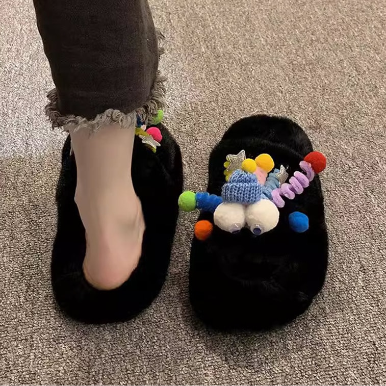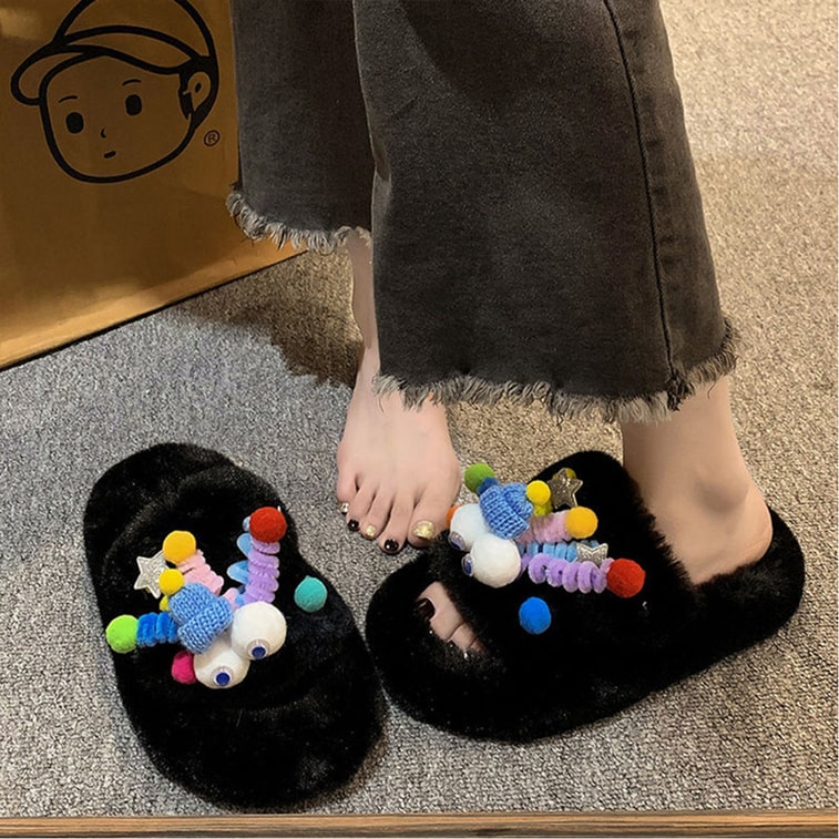 New Cartoon Fur Home Anti Slip Cotton Slippers In Black 37(37-38)