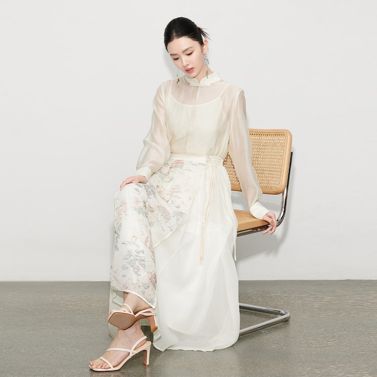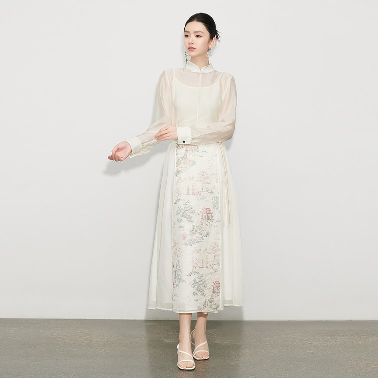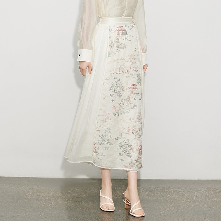 New Chinese Embroidery Improved Horse Face Skirt A-Line European Mesh Mesh Buckle Half Skirt Apricot Color M
