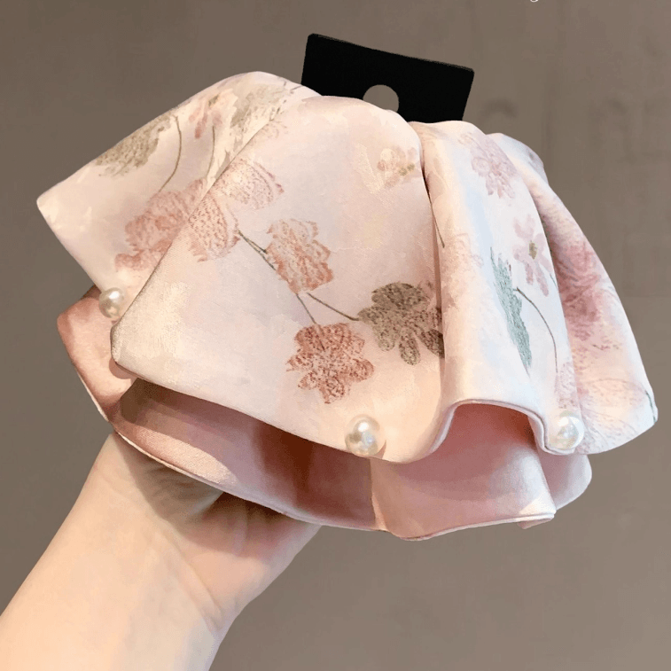 New Chinese-style elegant printed satin pearl ponytail clip, vintage hair claw for the back of the head *1 piece
