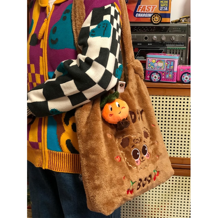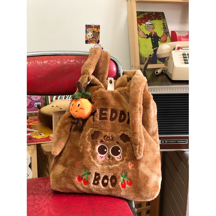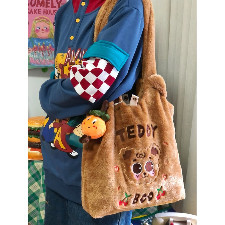 New Cute Teddy Dog Plush Casual Versatile Commuter Bag Brown Plush+Lucky Orange M