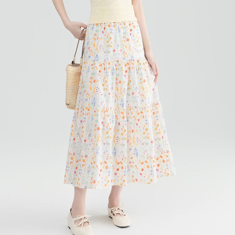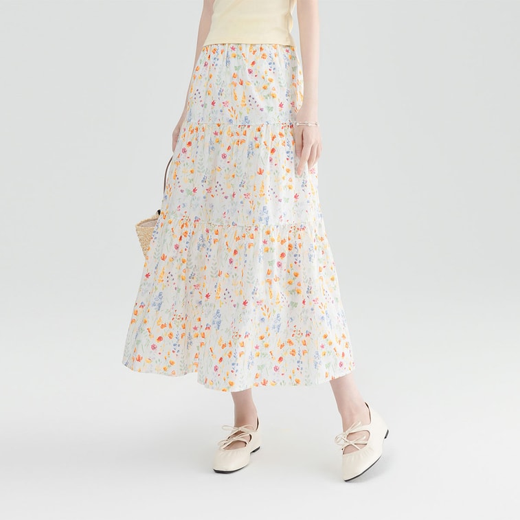 New Design With A Sense Of Forest Style Temperament Gentle Floral Skirt Leaf Orange F