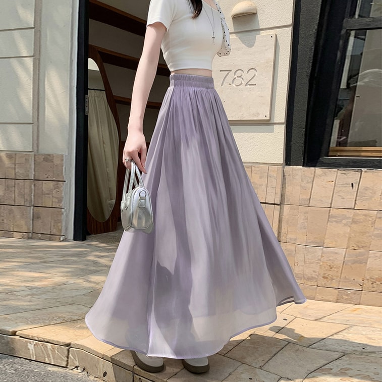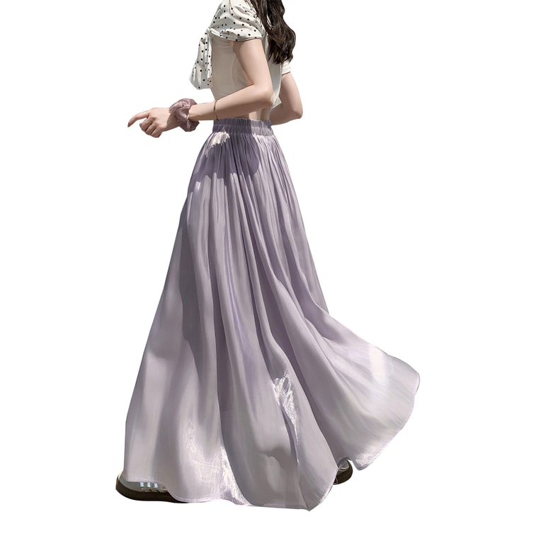 New Flowing Gauze Satin A-Line Skirt That Covers Flesh And Appears Slim Purple S