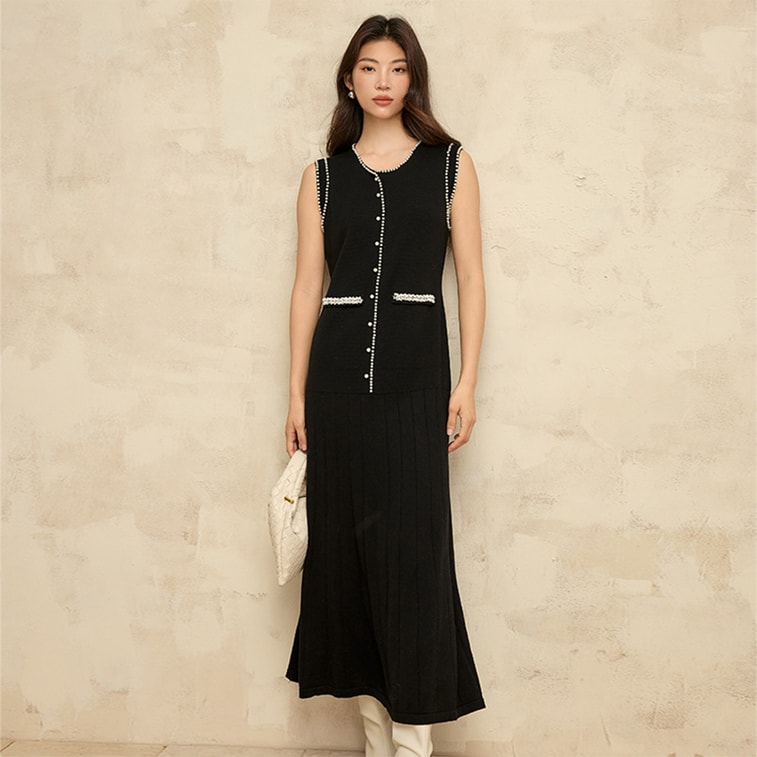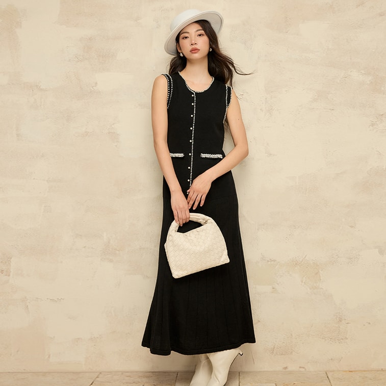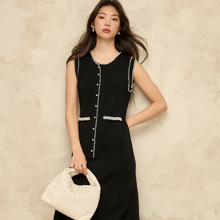 New Heavy Industry Dingzhu Xiaoxiangfeng Knitted Dress Sleeveless Vest Skirt Black M | Yami