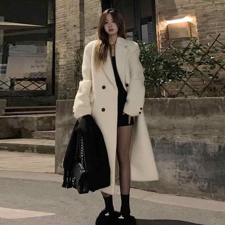 New Korean High-End Thick Woolen Coat With Woolen Coat In Beige Color M