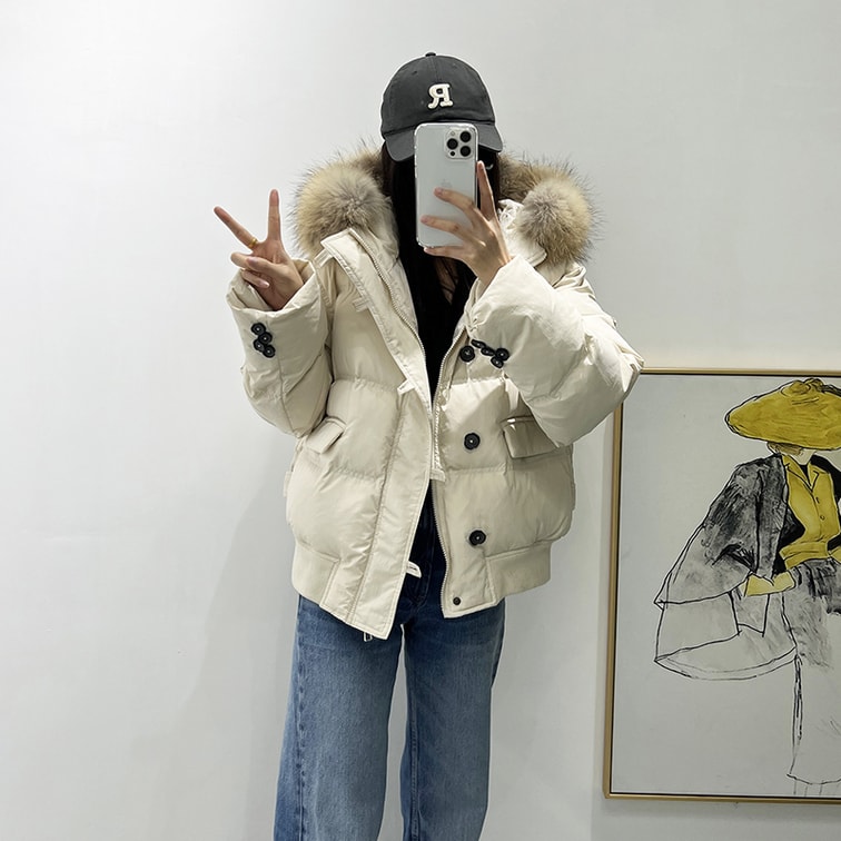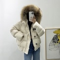 New Large Fur Collar Loose And Thick Down Jacket In Beige Color M
