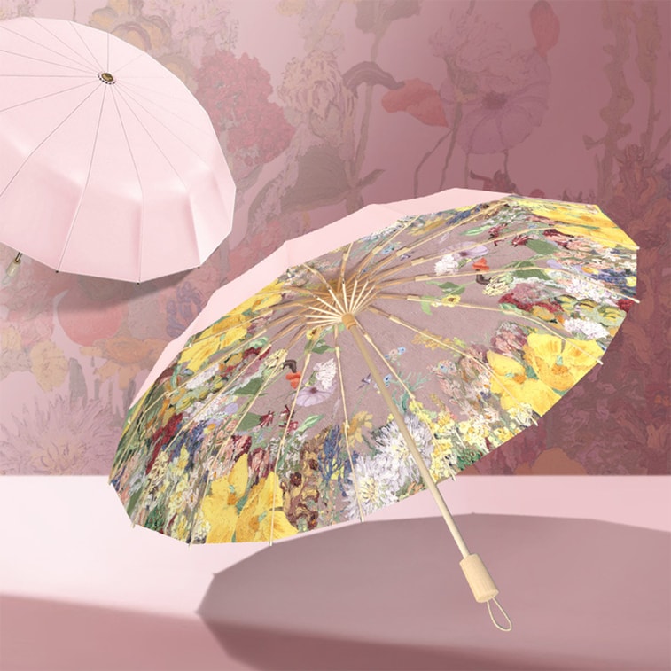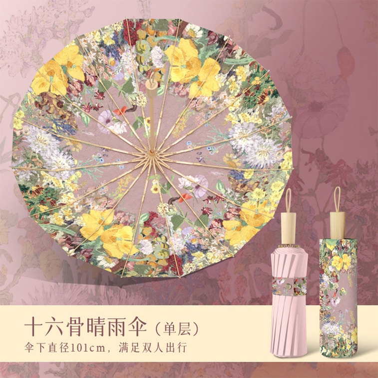New Oil Painting With Chinese Style 16 Bone Color Rubber Sunshade Dual-Use Umbrella Garden 1 Pack
