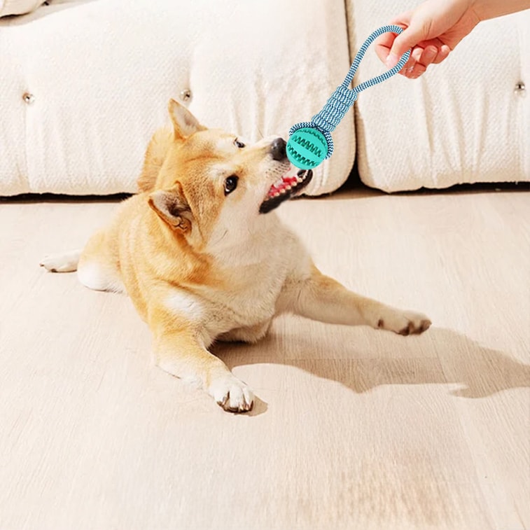 New Pet Interactive Pulling Rope Leakage Food Ball Pet Interactive Toy Festival Christmas and New Year Gift Lake Blue F