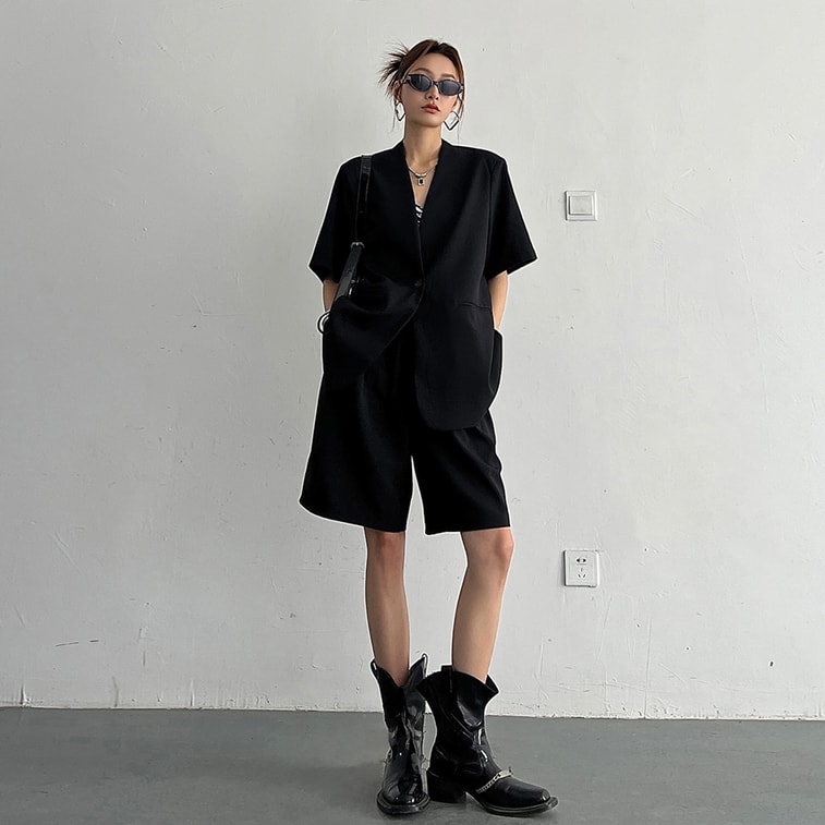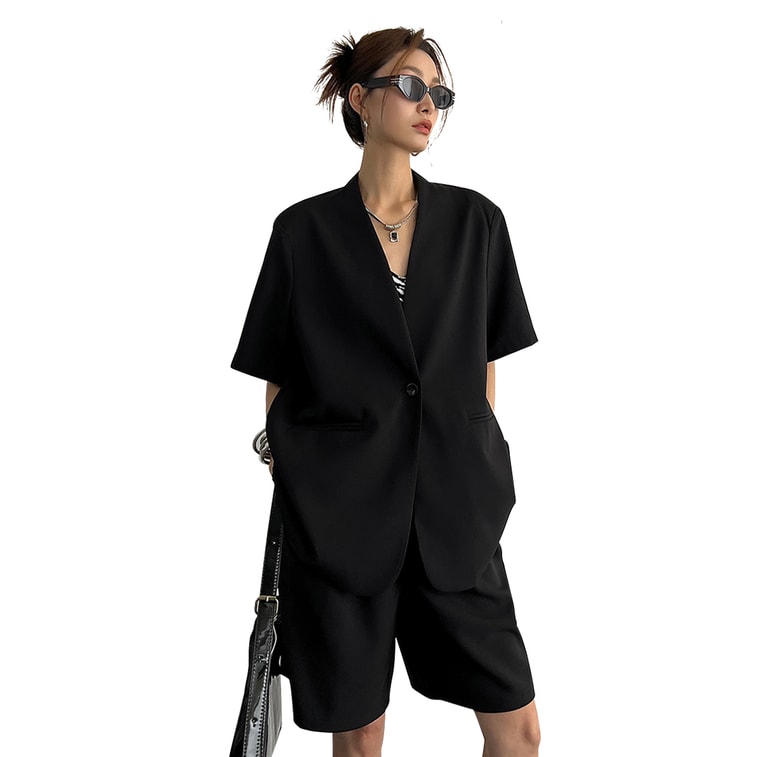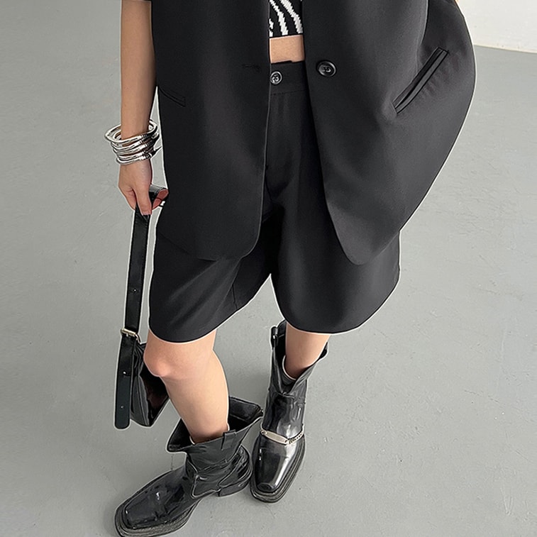 New Slim High Waisted Wide Leg Suit Shorts Black Shorts S