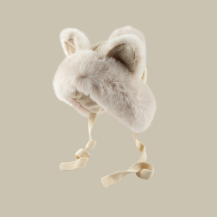 New Sweet And Cute Fox Ear Plush Strap Ear Protector Wool Hat Off White F