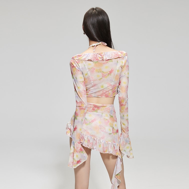 New Vacation Pure Desire Atmosphere Slimming Swimsuit Oil Painting Flower Blending M