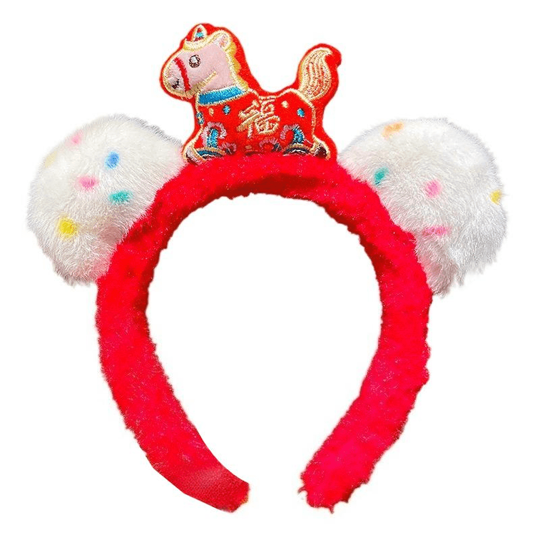 New Year's Hair Band, Festive Children's Plush Headwear, Red Pony Plush Hair Band 15cm*1 Piece | Yami
