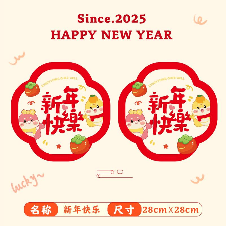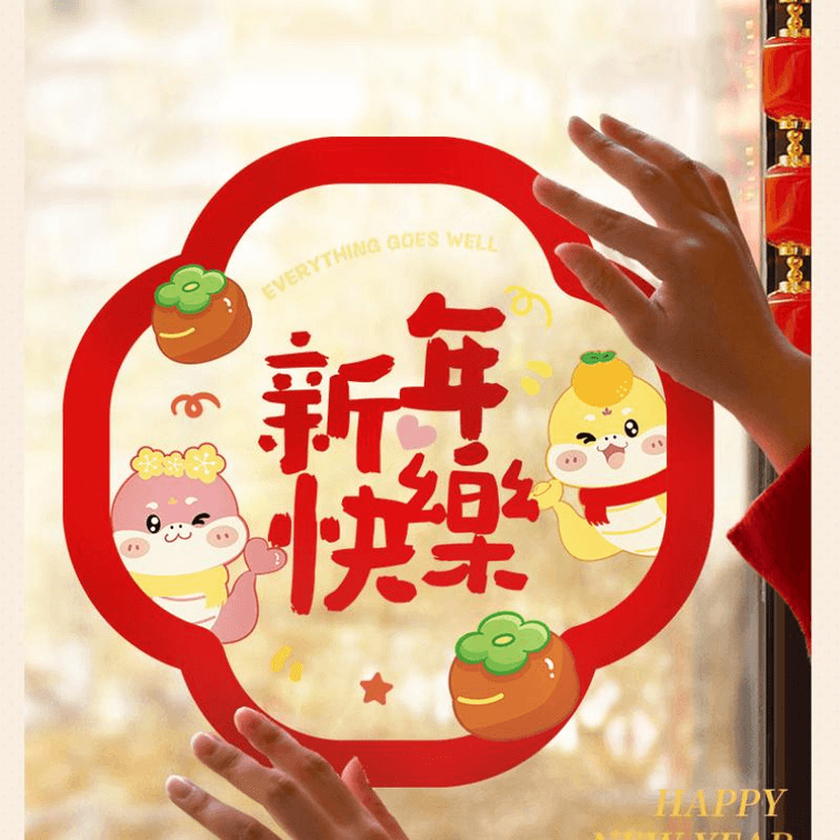New Year's Static Door Stickers Decoration Spring Festival Supplies Happy New Year * 1 Pair