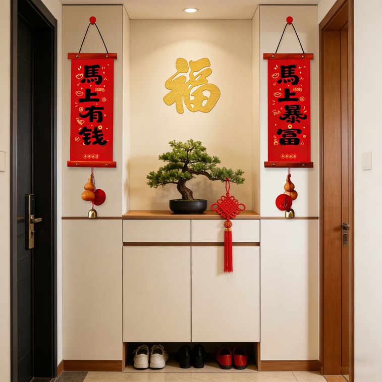 New Year wooden hanging scroll couplets Immediately rich style 1 pair