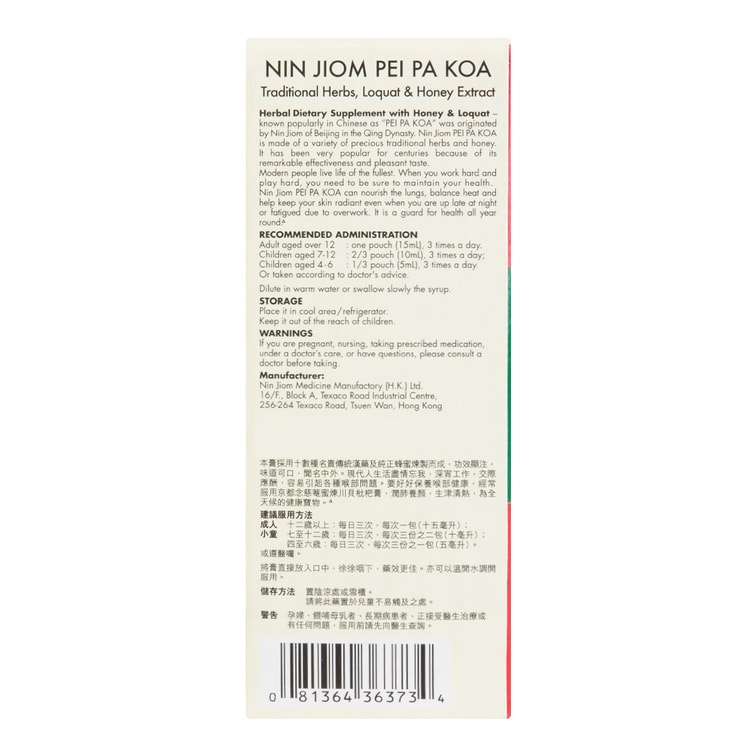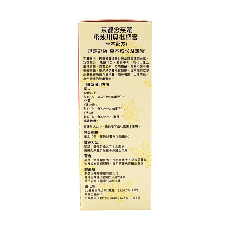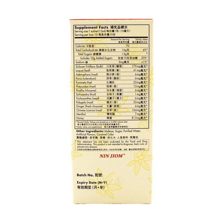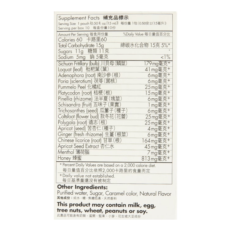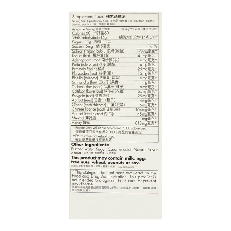 Herbal Dietary Supplement with Honey and Loquat Convenient Pack 15ml*10