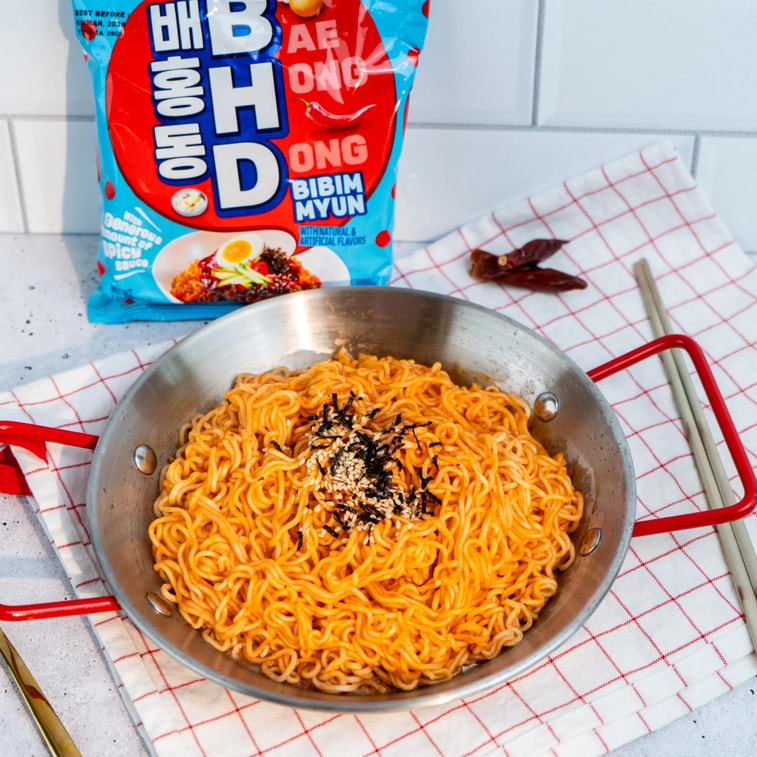 BHD Bae Hong Dong Bibim Myun With Generous Amount of Spicy Sauce - Instant Noodles , 4 Bags , 19.3 oz