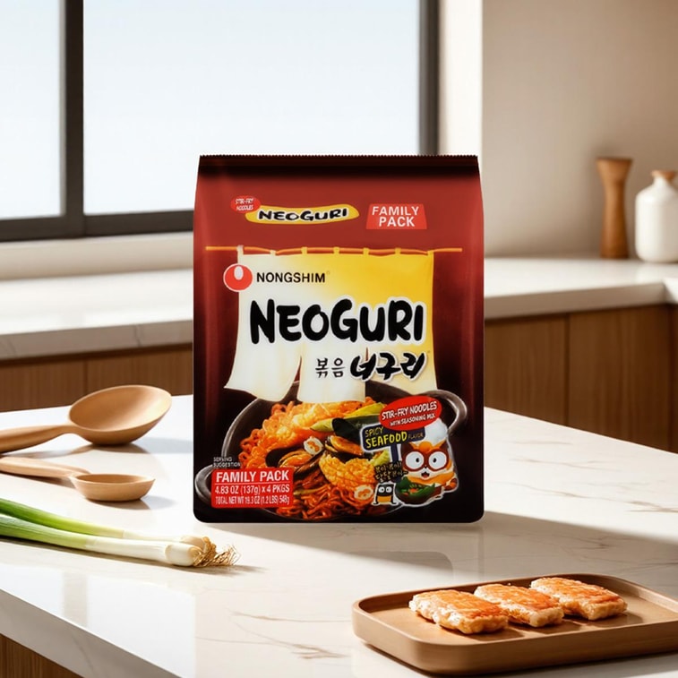 NeoGuri Spicy Seafood Stir-Fry Noodles - 4 Packs, 4.83oz