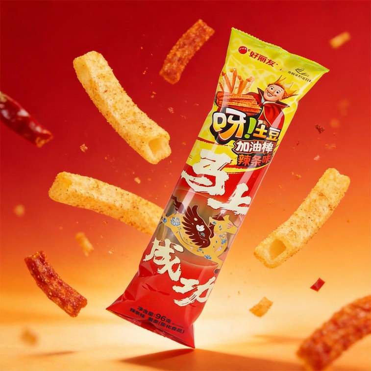 O! Karto Tube Shape Potato Chips,Spicy Strip Flavor,3.4oz
