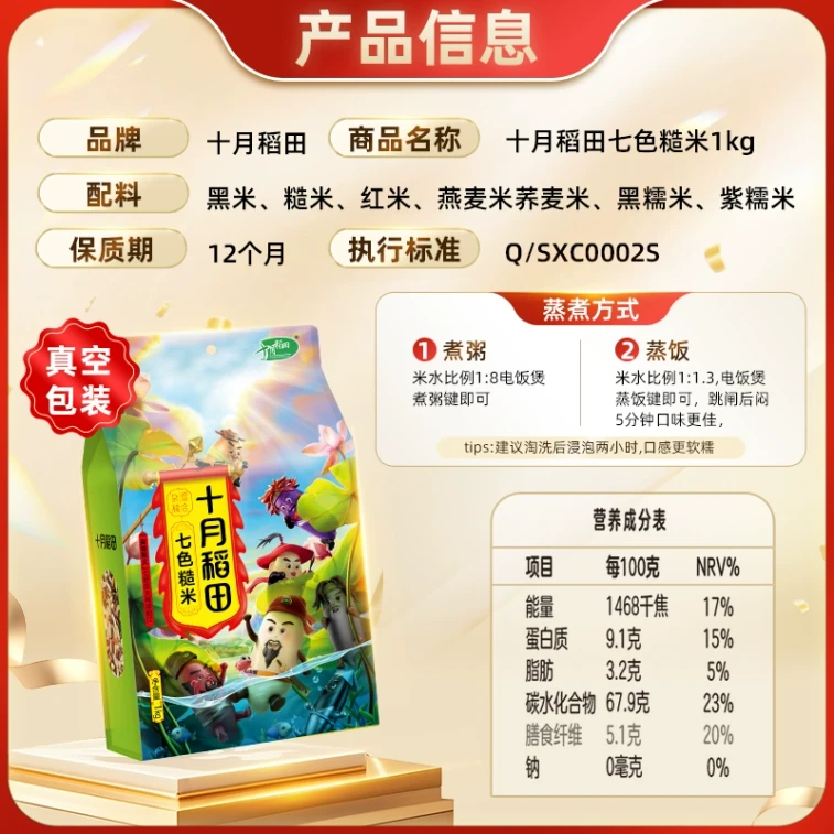 October Rice Field Seven-Color Brown Rice 1000g*1 bag