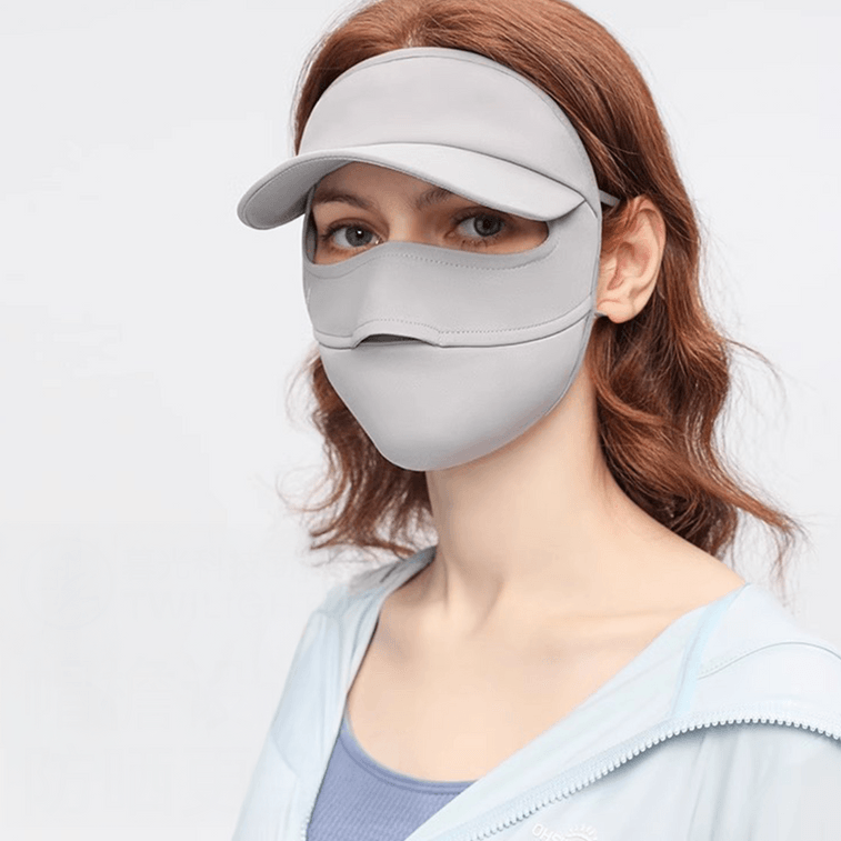 Sun Protection Full Face Mask with Hat Brim Full Face Sunscreen Black Cloud Grey