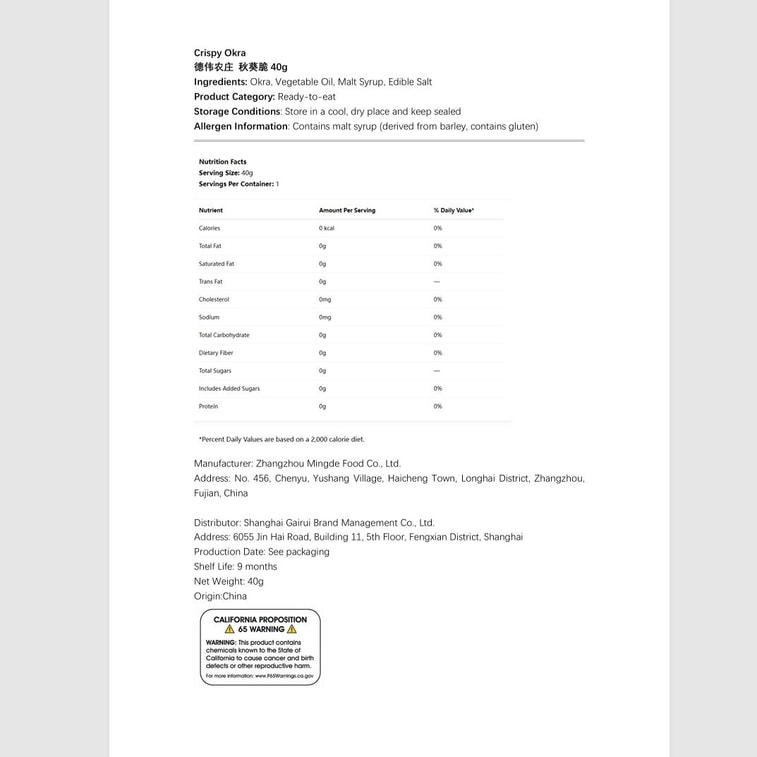 DAVY FARM Okra Crisps 40g, a popular snack of dehydrated fruit and vegetable crisps | Yami