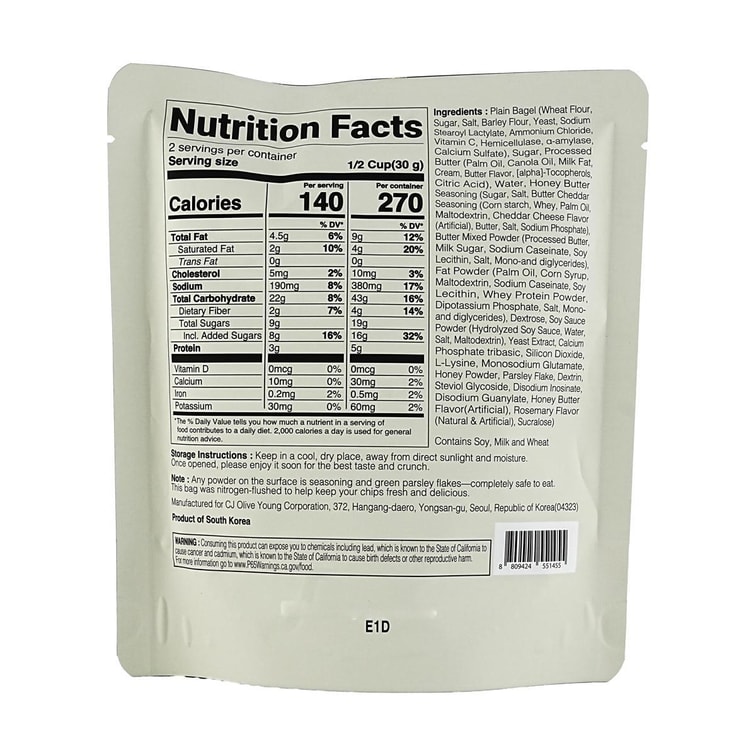 【Olive Young's #1】Honey Butter Bagel Chips,2.11 oz 【Online Exclusive】【 Low Calories】【Olive Young Bagel Chips】
