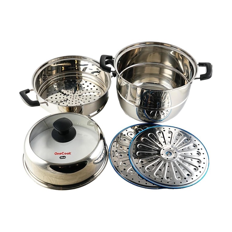 OneCook Stainless Steel Three-Layer Steamer, Composite Bottom, Stove Universal, 28CM