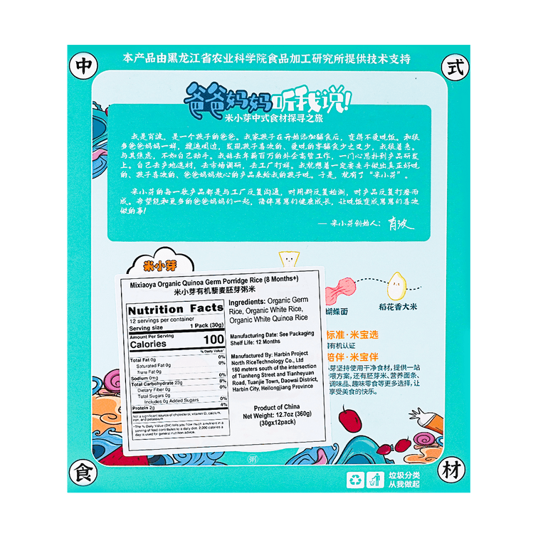 Organic Sprouted Rice Porridge with Mixed Grains and Millet, Suitable for 8+ Weeks Old, 12.34 oz