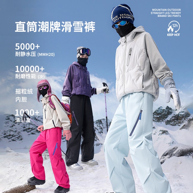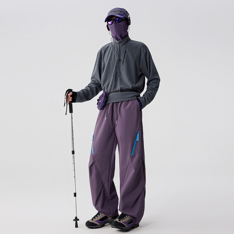 Outdoor 3-in-1 Thickened Down Fleece Pants Windproof Warm Straight Cargo Pants Unisex Secret Purple 3-in-1 Fleece Liner S