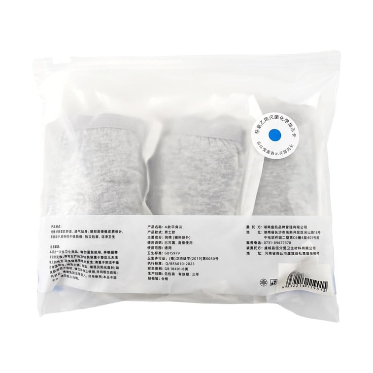 Ouyizi Pure Cotton Disposable Men's Flat-Angle Gray 2XL Code 3 Pieces