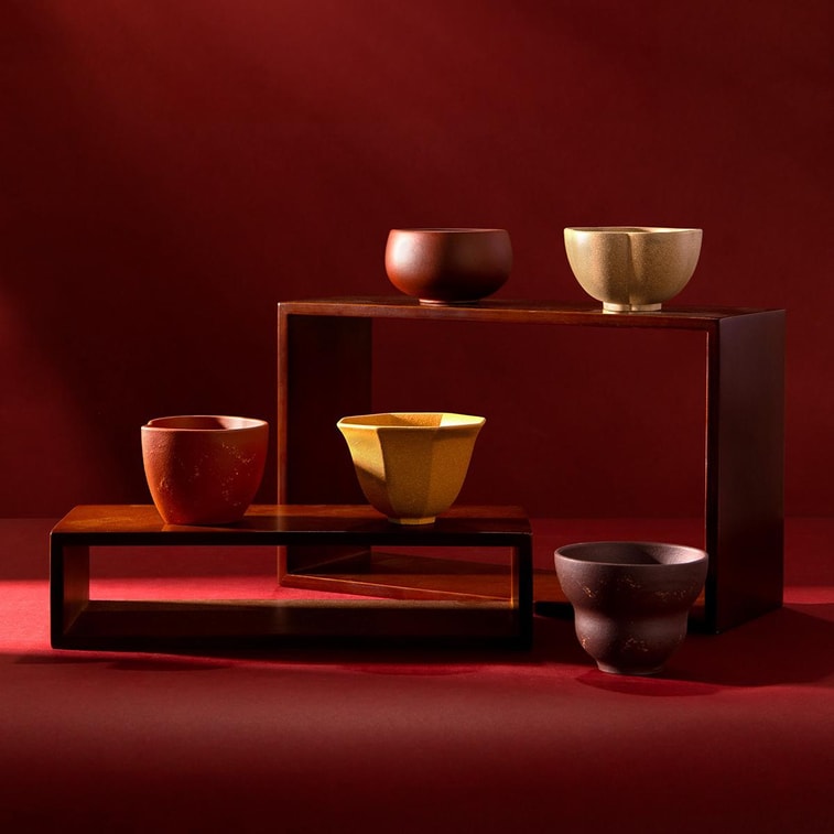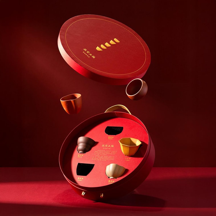 Palace Museum Cultural and Creative Five Blessings Purple Sand Cup Tea Set of 5