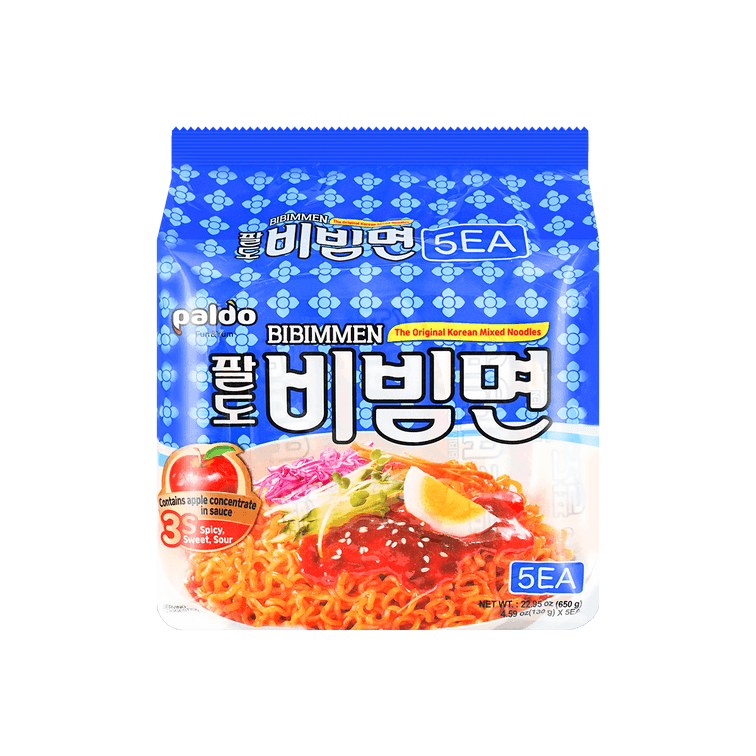 Bibimmen Ramen - Brothless Cold Spicy Korean Instant Noodles, 5 Packs, 22.92oz【JK & RM's Pick】
