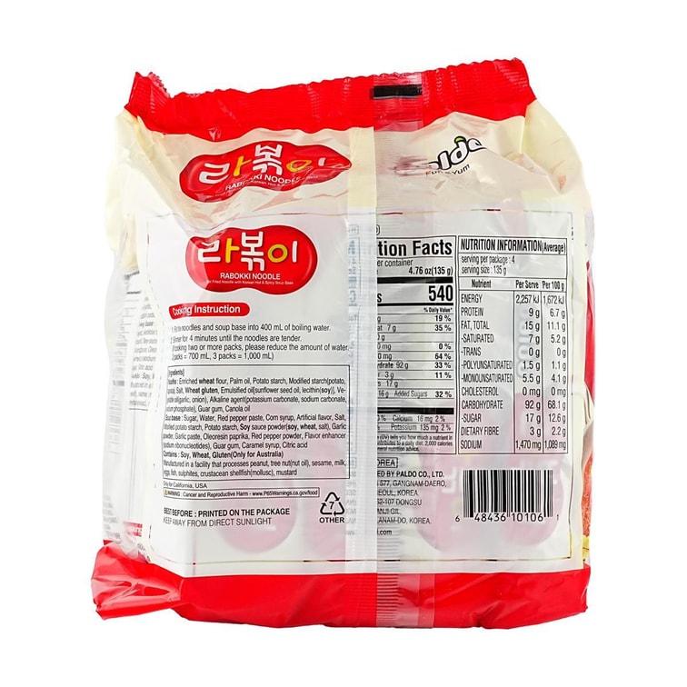 Rabokki Ramen Instant Noodle With Hot Soup Base 4pc 20.45oz