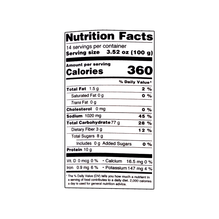 *Disclaimer:Nutrition info is based on product packaging and for reference only. Content may vary due to version, language, or image differences. Please check the actual package. For questions on ingredients, allergens, or suitability, read the label or contact support.