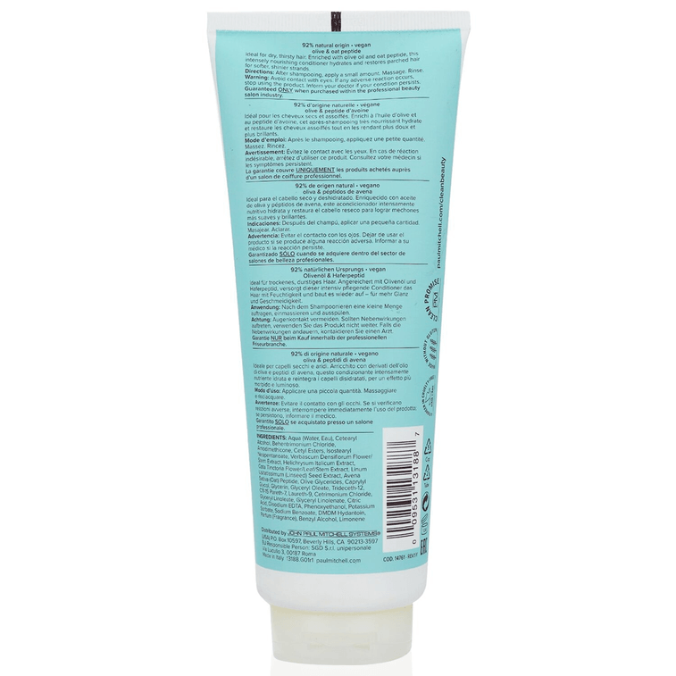 An intensely nourishing & hydrating conditioner for dry hair Handcrafted with sustainably sourced ingredients of 92% natural origin that deliver professional results Formulated with organic olive & oat peptide to maintain hair health & protect from damage Remarkably hydrates & restores parched hair Infused with a mild floral earthy scent to enhance the mood Hair appears shinier & more manageable Vegan, color-safe, free of sulfate, parabens & gluten