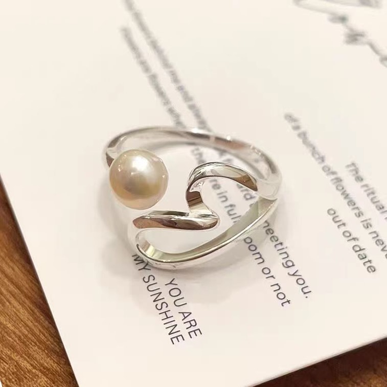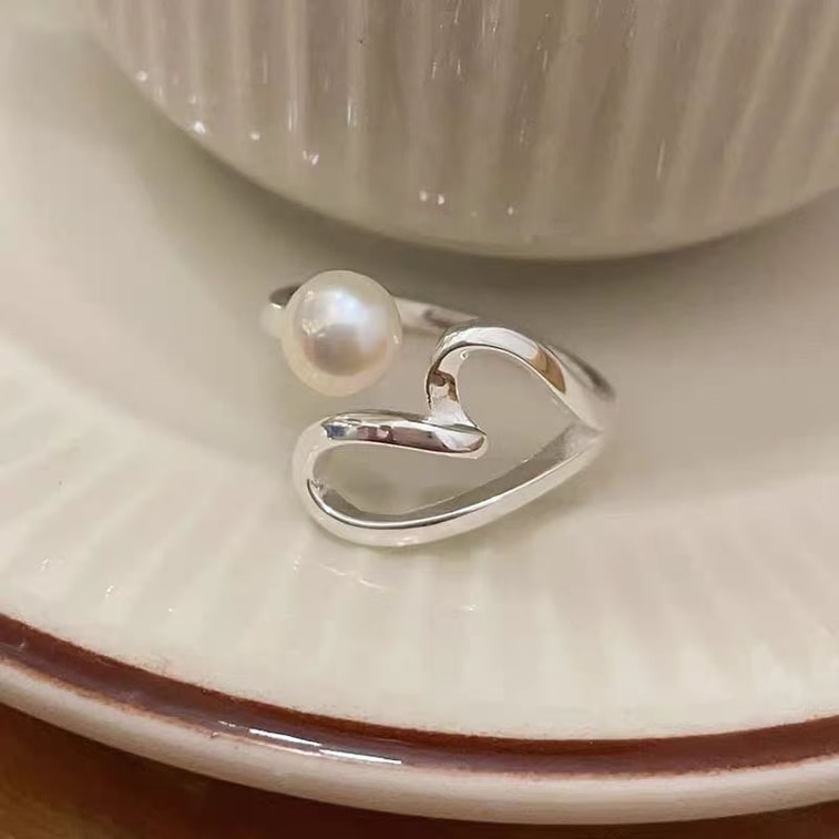 Pearl heart ring with adjustable opening design set of 1 pearl and rivet collision too piercing