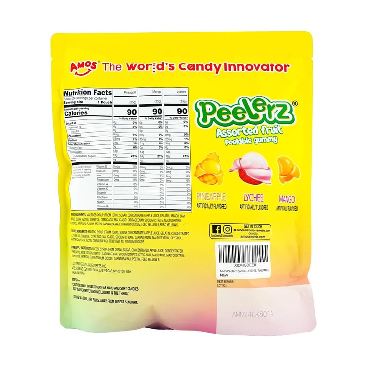 Peelerz Fruit Gummy Candy, Mango Lychee Pineapple Flavor,Shareable Variet Packs, 21.4oz