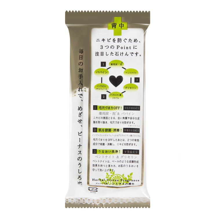 This is a medicated soap to treat acne-prone skin on the back intensively in 3 steps. It features a double cleansing formula made from charcoal, mud, and papain to clear up clogged pores. The double active ingredients, triclosan and dipotassium glycyrrhizate, disinfect the skin, while bentonite and glycerin cleanses the skin to a hydrating finish.