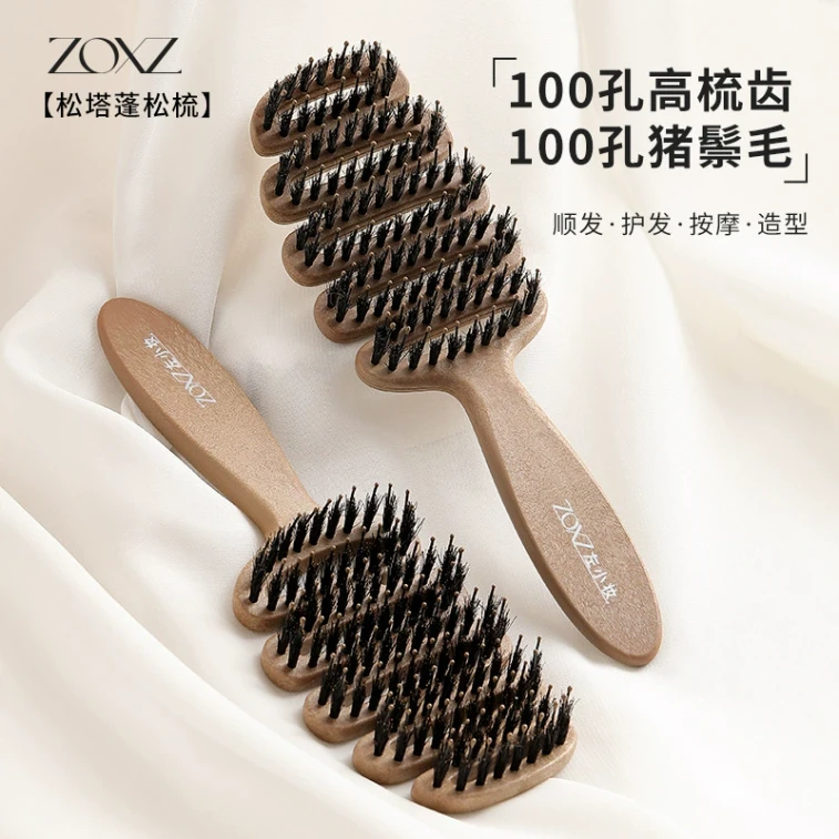 Pine cone pig bristle hair care comb 1 piece fluffy styling creates high crown anti-static detangling comb.
