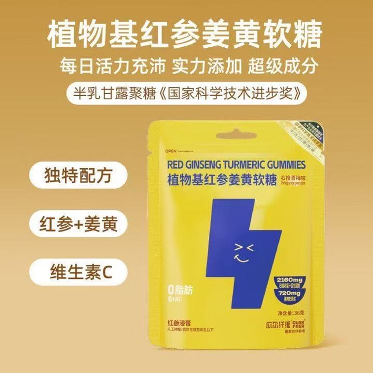GUAR FIBER Plant-based red ginseng and turmeric gummy candies Pomegranate and green plum flavor 36g [Replenish daily energy] | Yami