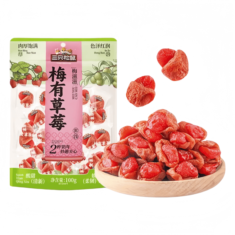 Plum with strawberry, green plum, dried strawberry, preserved fruit, sweet and sour plum 100g*1 bag