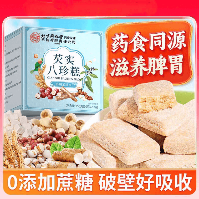 Tongrentang Qian Shi Fu Ling Bazhen Cake: 250g Herbal Biscuit for Spleen & Stomach Health 8 Herbs No Sugar