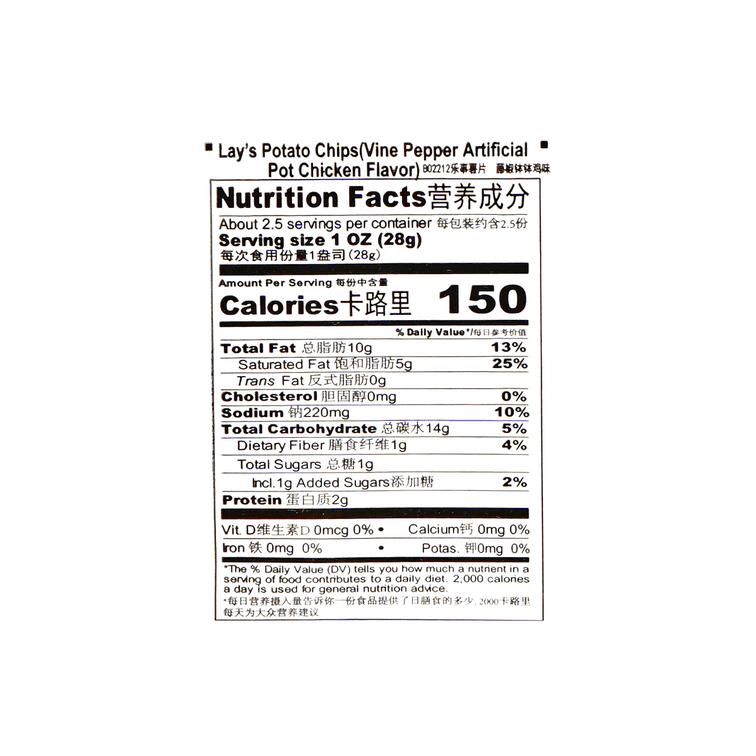 Spicy Rattan Pepper Bowl Chicken Flavor Potato Chips, 2.46oz