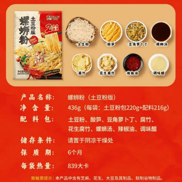 | Flavor | Potato Starch Noodles-based Luosifen |