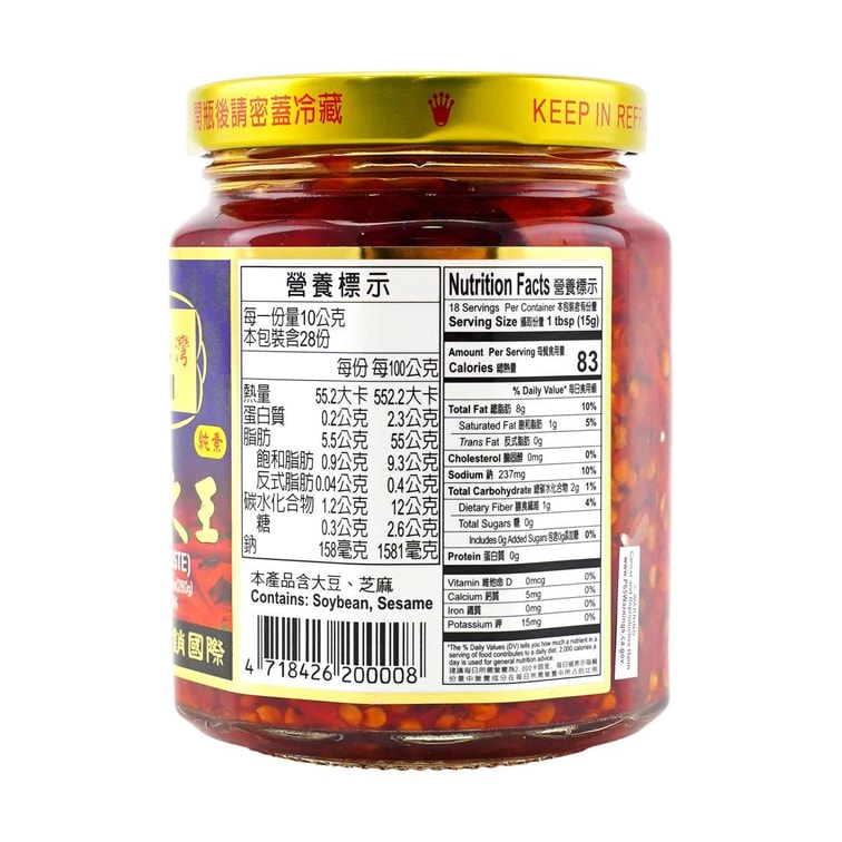 | taste | Super Hot Chili Paste In Soybean Oil |