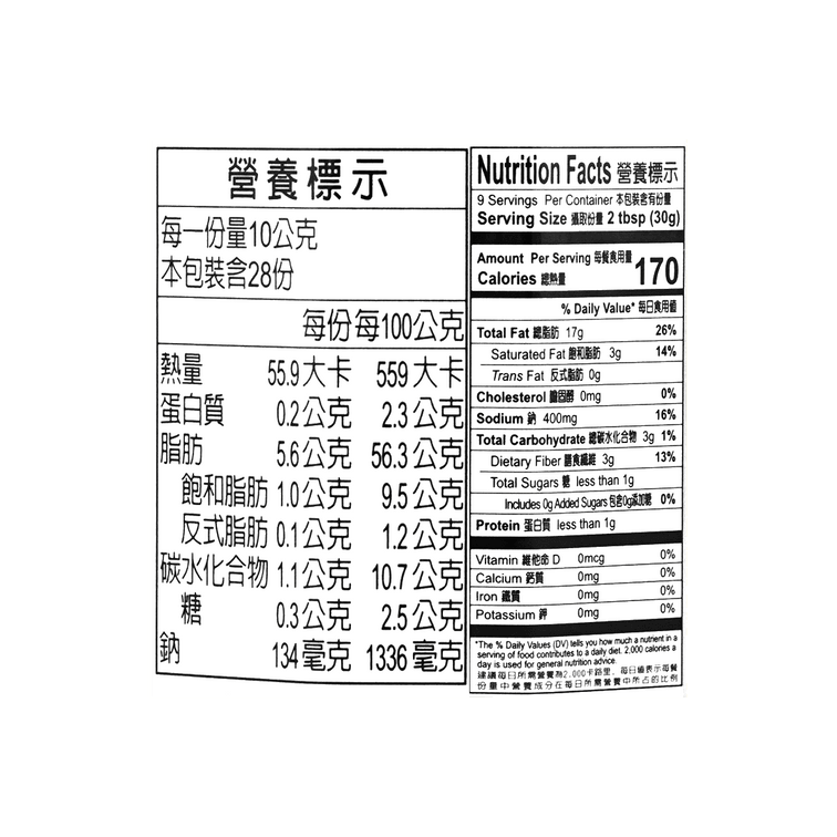 *Disclaimer:Nutrition info is based on product packaging and for reference only. Content may vary due to version, language, or image differences. Please check the actual package. For questions on ingredients, allergens, or suitability, read the label or contact support.
