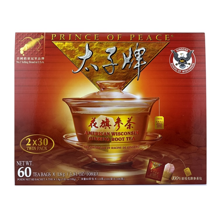 PRINCE OF PEACE American Wisconsin Ginseng Root Tea (2 boxes x 30 tea bags each) No.1 Selling Brand in USA- Premium Herbal Tea | Yami