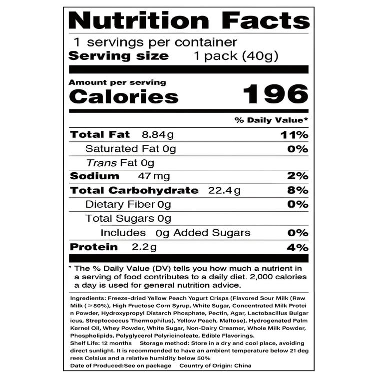 Probiotic Freeze-Dried Yogurt Bites Yellow Peach Flavor Healthy Snack 40g Bag